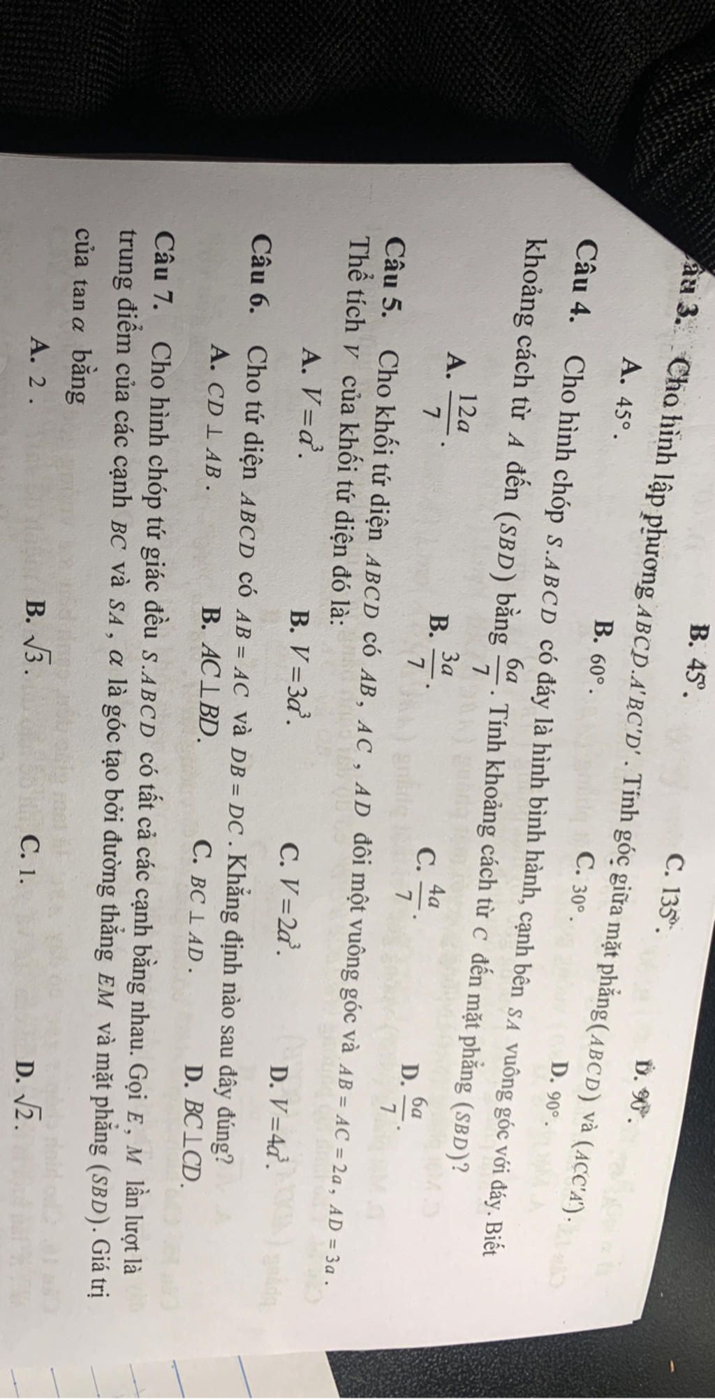 Câu 4. Cho hình chóp S.ABCD có đáy là hình bình hành, cạnh bên SA vuông góc với đáy. Biết