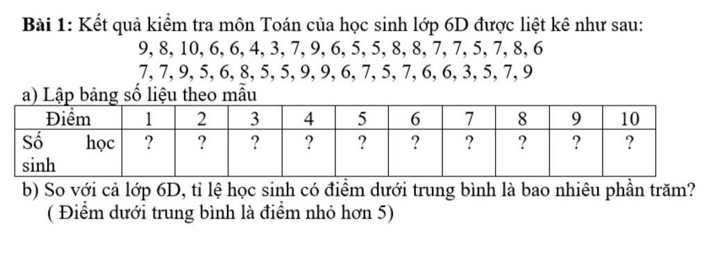Số học sinh có điểm dưới trung bình chiếm số phần trăm là: