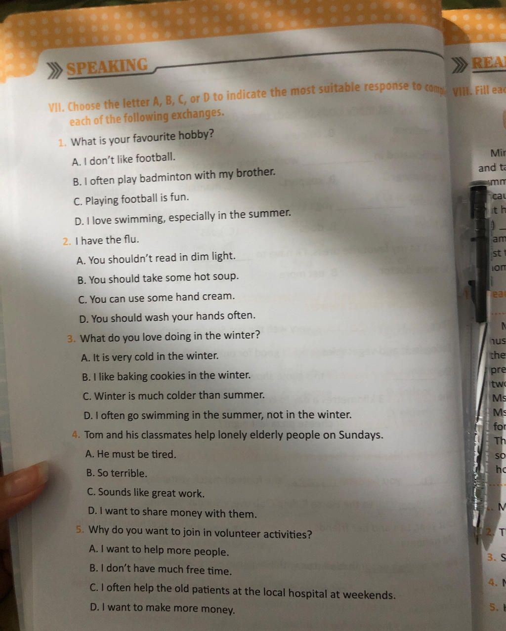 3 . B . I like baking cookies in the winder