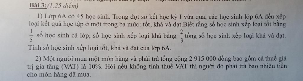 1,)Số học sinh xếp loại tốt ở lớp 6A là