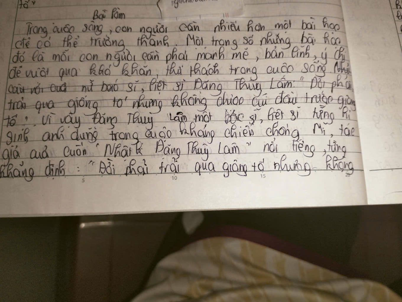 Viết bài văn nghị luận về câu nói của bác sĩ, liệt sĩ Đặng Thùy Trâm "Cuộc đời trải qua giông tố, nhưng không được cuối đầu trước giông tố".