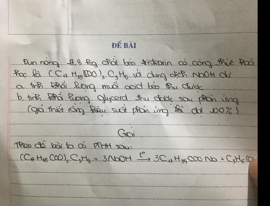 khối lương glixerol (b) = 0,02 x 92 = 1,84 gam