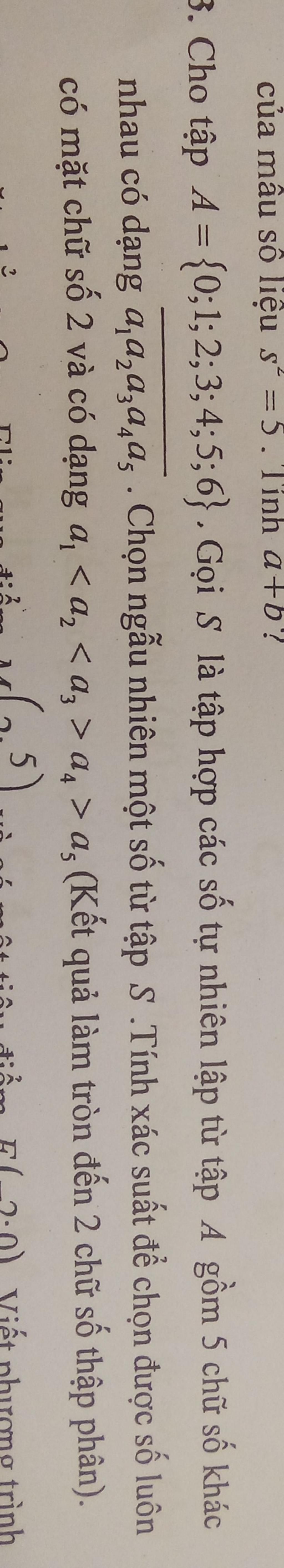 của mẫu số liệu s° =5. Tỉnh a+b?