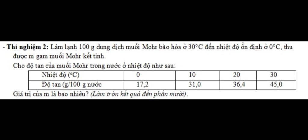 Cứ 100 gam nước hoà tan được 17,2 gam muối Mohr.