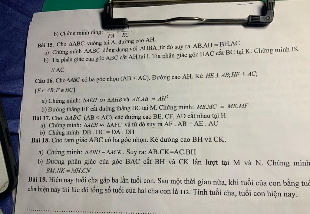 Giải thích các bước giải: a) Xét ΔAEB và ΔAFC có: