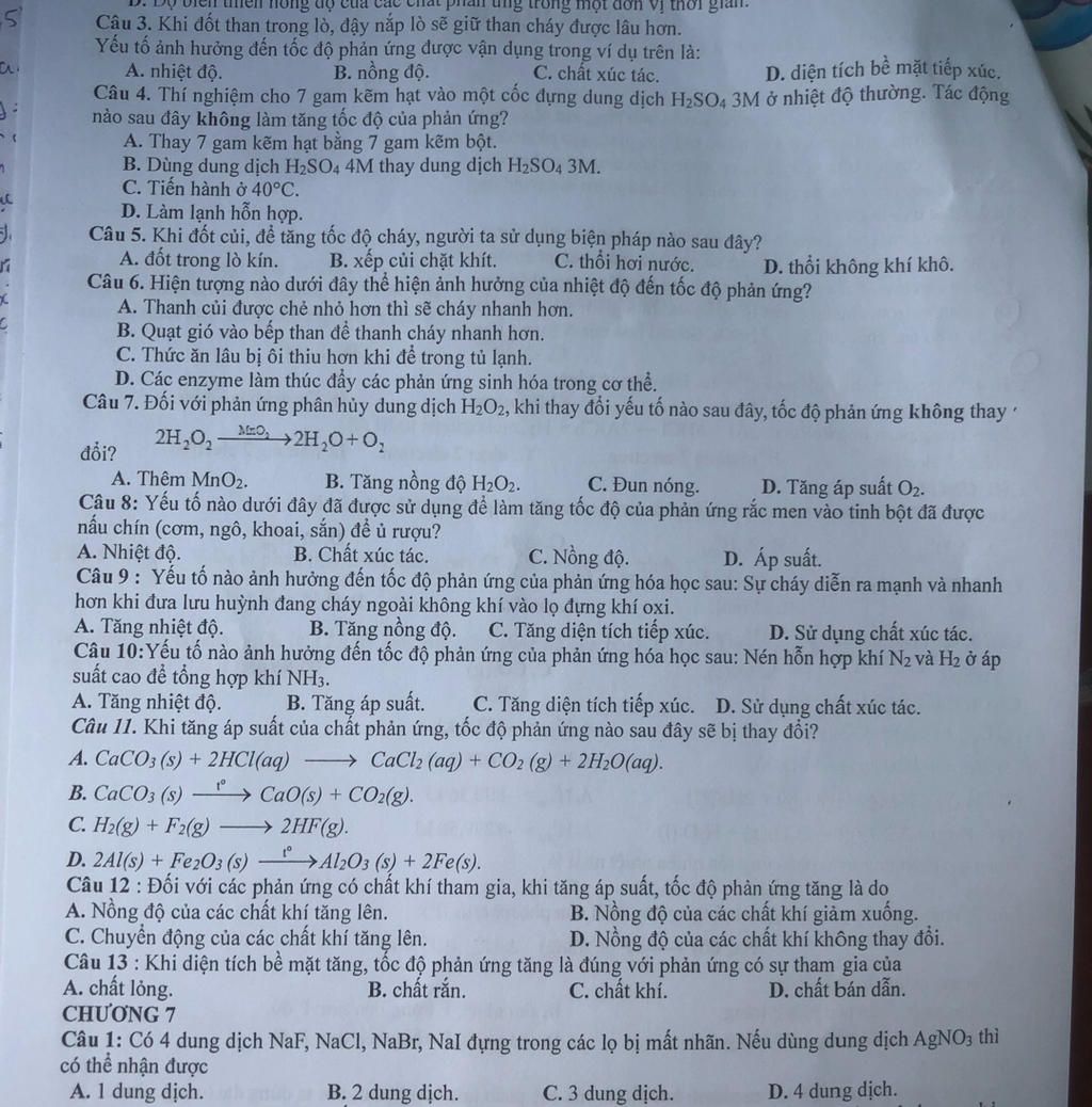 Làm lạnh hỗn hợp thì tốc độ phản ứng giảm