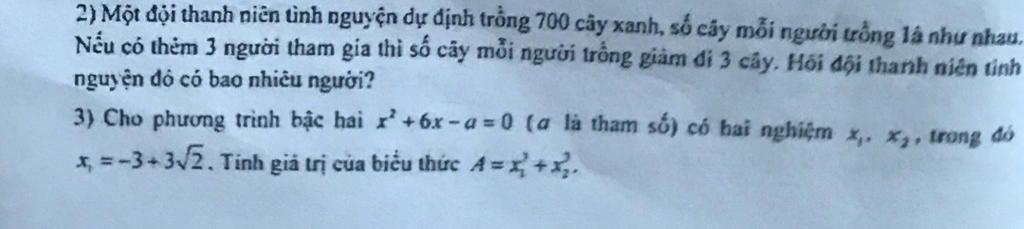 2) Một đội thanh niên tình nguyện dự định trong 700 cây xanh, số cây mỗi người trồng lá như nhau.
