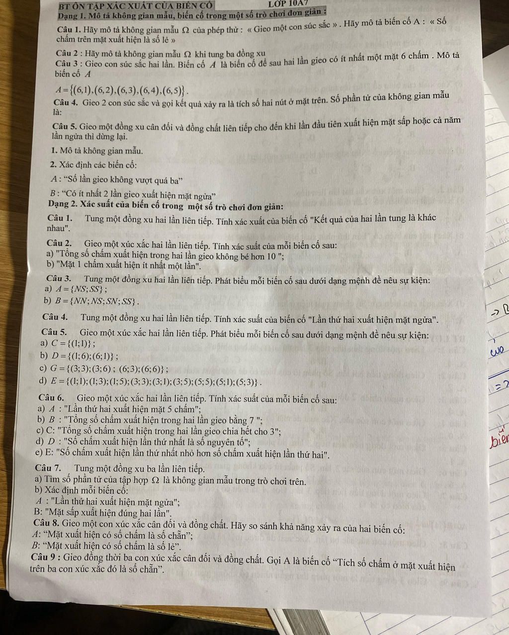 BT ÔN TẬP XÁC XUẤT CỦA BIỂN CÓ.