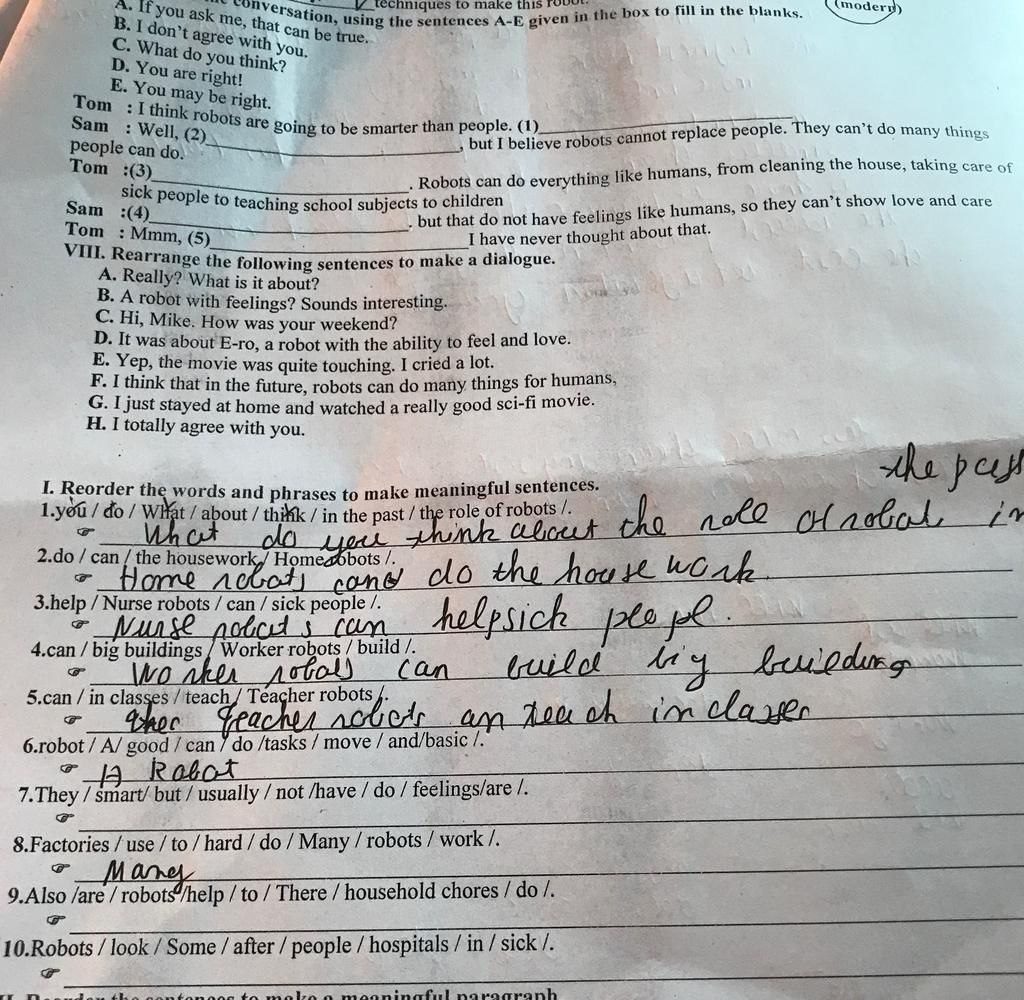 ⇒ Tom không đồng ý với ý kiến của Sam và đưa ra các việc robot có thể làm.