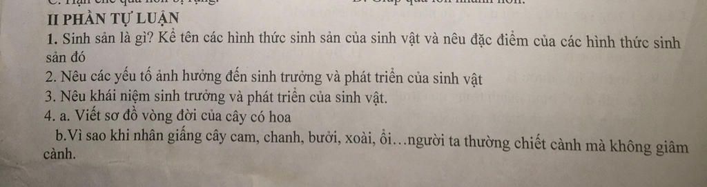 1. Sinh sản là gì? Kể tên các hình thức sinh sản của sinh vật và nêu đặc điểm của các hình thức sinh