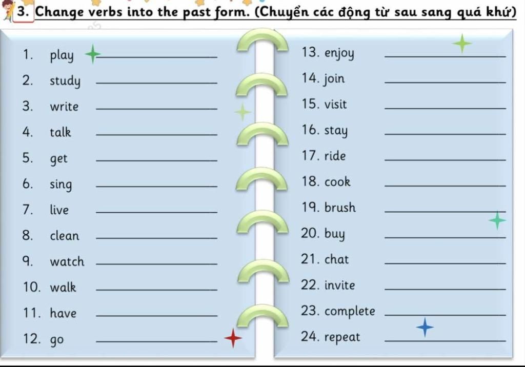 `@` Còn lại đa số thêm ed như bình thường hoặc chia theo `360` động từ bất quy tắc.