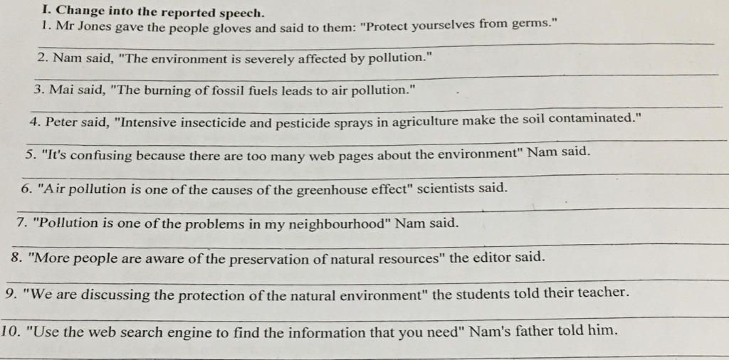 9. the students told the teacher that they were discussing the protection of ....