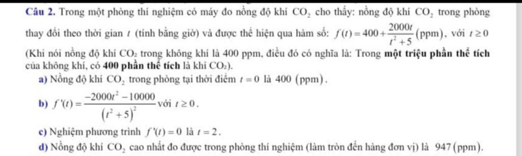 Nồng độ khí `CO_2` trong phòng tại thời điểm `t=0` là: