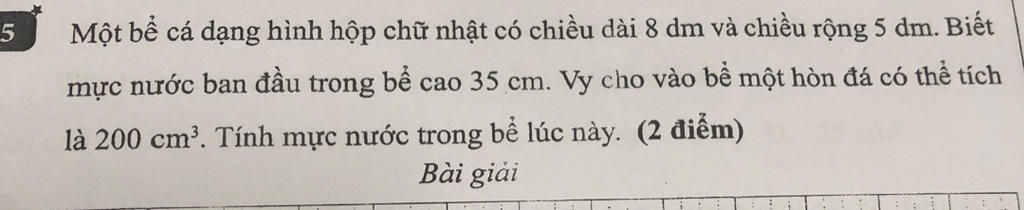 Đổi : ` 35 cm = 3 , 5 dm ; 200 cm^3 = 0 , 2 dm^3 ` .