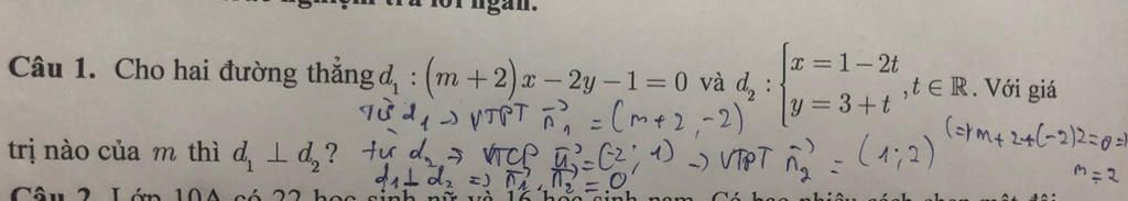 Câu 1. Cho hai đường thẳngd, : (m+2)x – 2y−1=0 và dy :