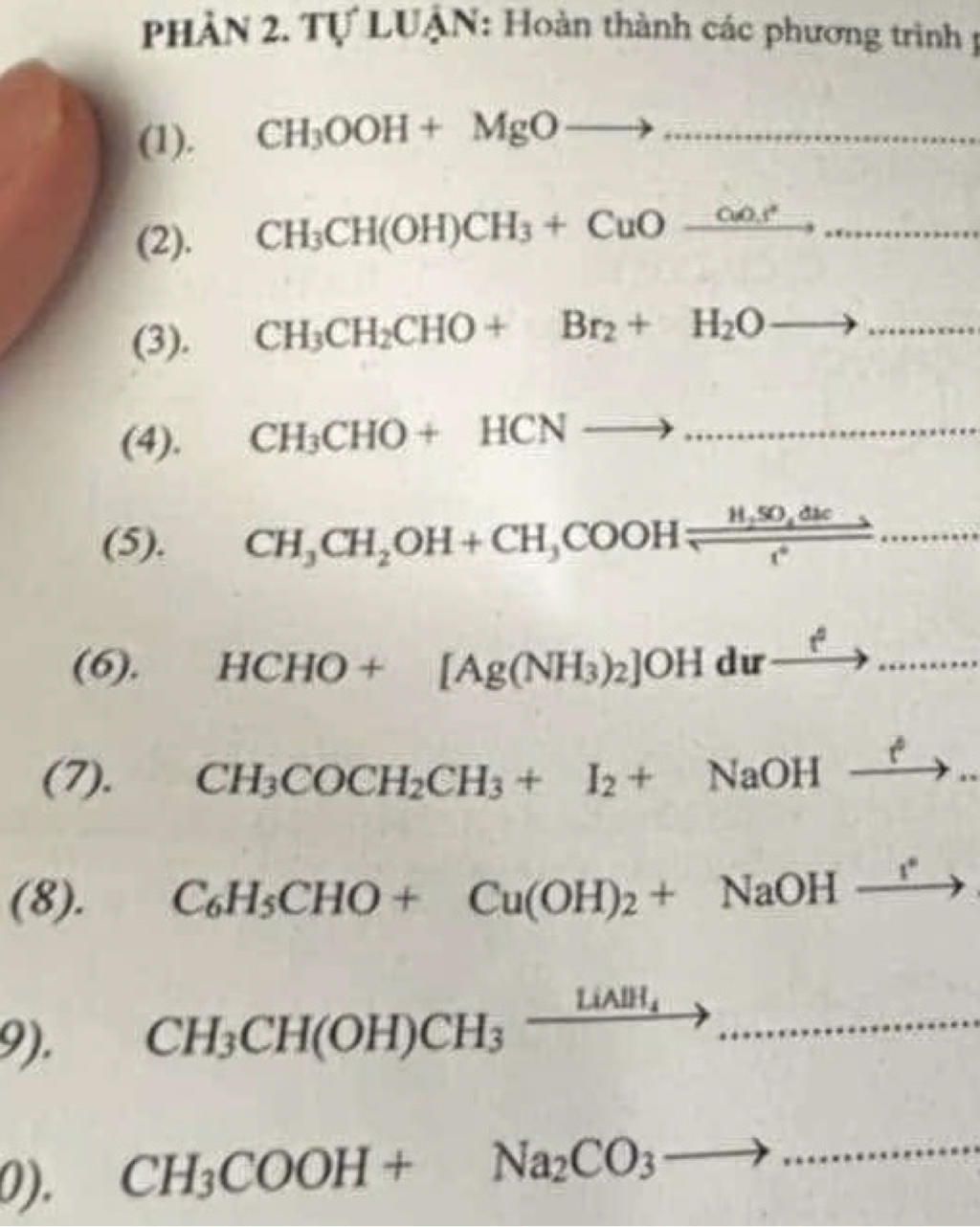 (5) CH₃CH₂OH + CH₃COOH →( H2SO4, nhiệt độ) CH₃COOC₂H₅ + H₂O