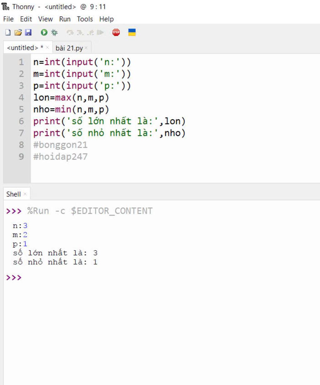 Câu 2. Viết hàm tìm max và min của 3 số m, n, p