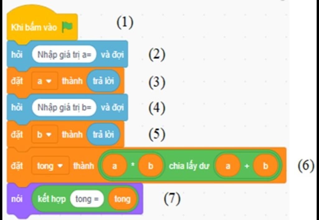a) Để chạy chương trình Scratch nháy chuột vào lệnh (1)