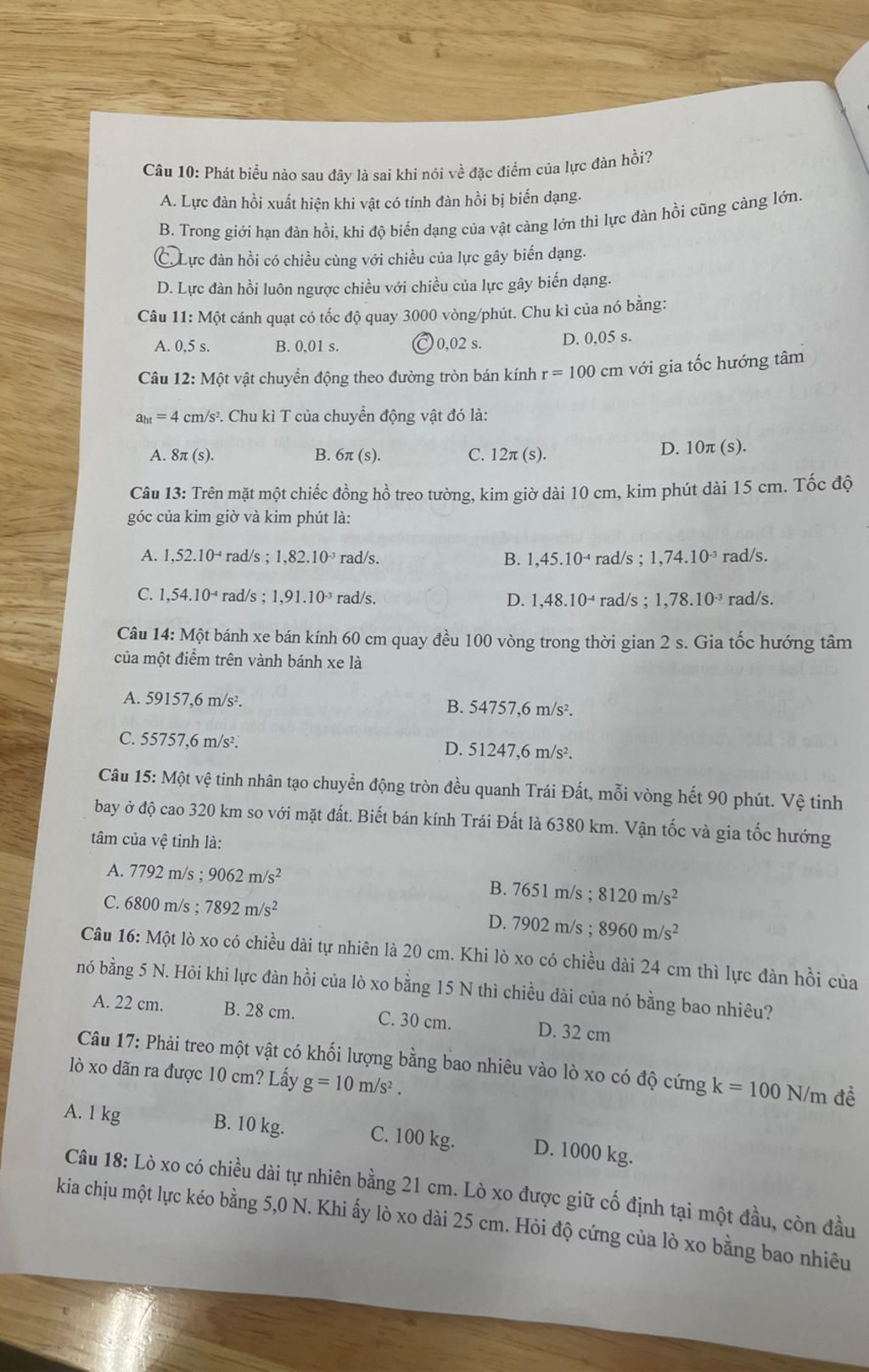 Đáp án: 12D - 13B - 14A - 15A - 16D - 17A