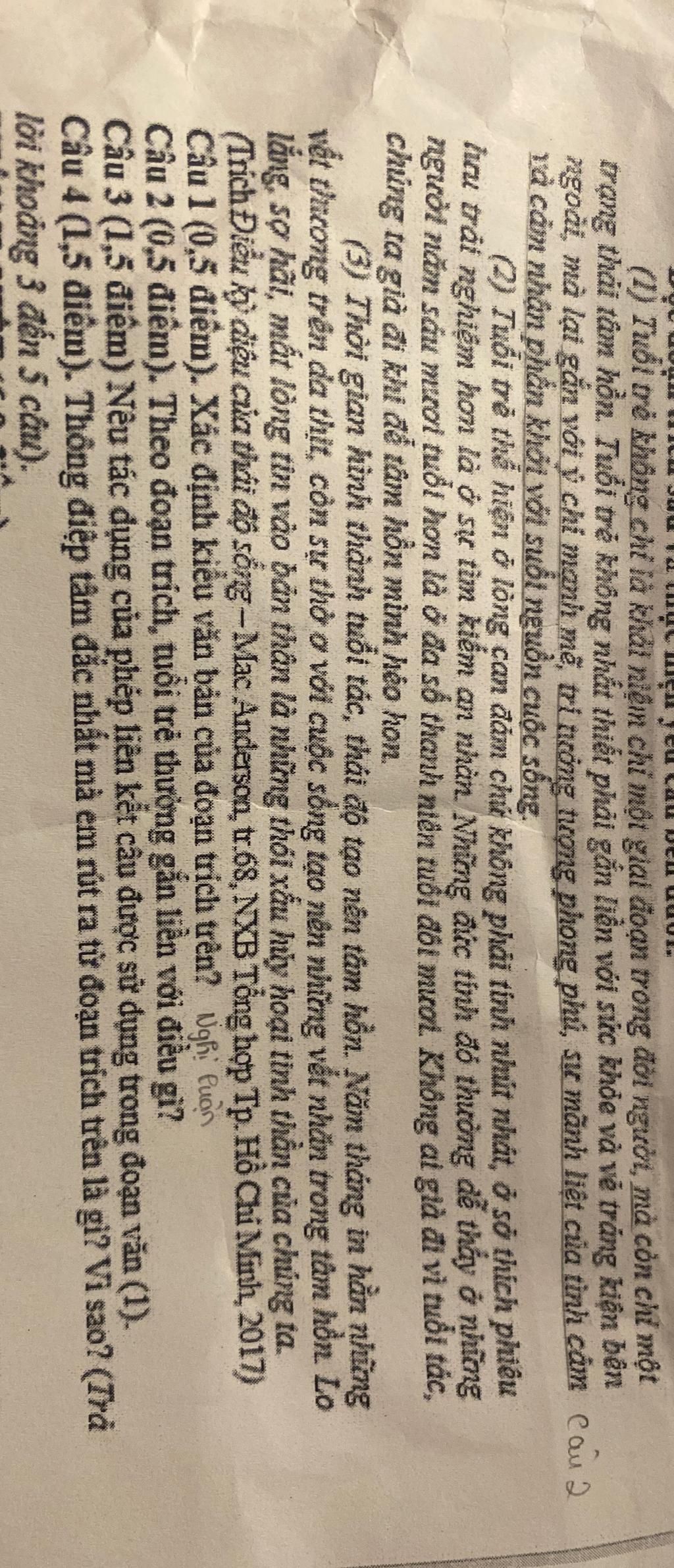 " `(1)` Tuổi trẻ không chỉ là khái niệm chỉ một giai đoạn trong đời người, mà còn chỉ một trạng thái tâm hồn. `(2)` Tuổi trẻ không nhất thiết phải gắn liền với sức khỏe và vẻ tráng kiện bên ngoài, mà lại gắn với ý chí mạnh mẽ, trí tưởng tượng phong phú, sự mãnh liệt của tình cảm và cảm nhận phấn khởi với suối nguồn cuộc sống. "