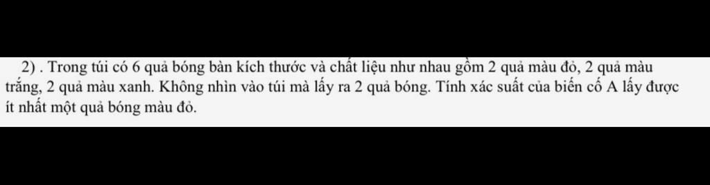 Lấy 2 quả bóng mà có ít nhất một quả bóng đỏ, có 3 cách (2Đ, 1Đ 1X, 1Đ 1T).