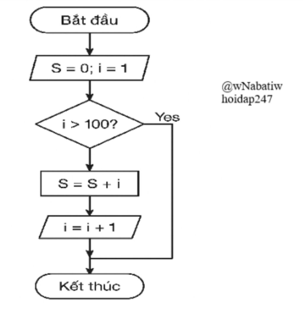 Câu 6: Viết thuật toán tính tổng các số từ 1 đến 100.