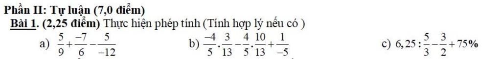 ` a) 5 / 9 + ` $\dfrac{- 7}{6}$ ` - 5 / -12 `