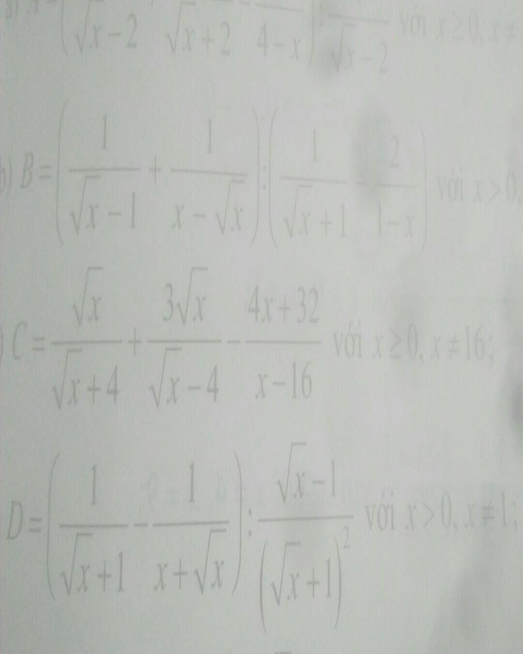 `D=((1)/(\sqrt{x}+1)-(1)/(x+\sqrt{x})):(\sqrt{x}-1)/((\sqrt{x}+1)^2 )` với `x>0;x\ne1`