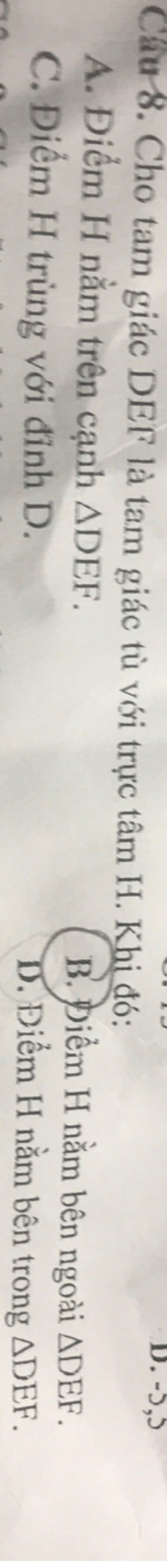 `=>` Trực tâm H sẽ nằm ngoài tam giác