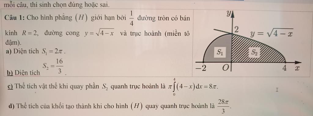 c) `V_2=π \int_{0}^{4} (\sqrt{4-x})^2 dx=8π`
