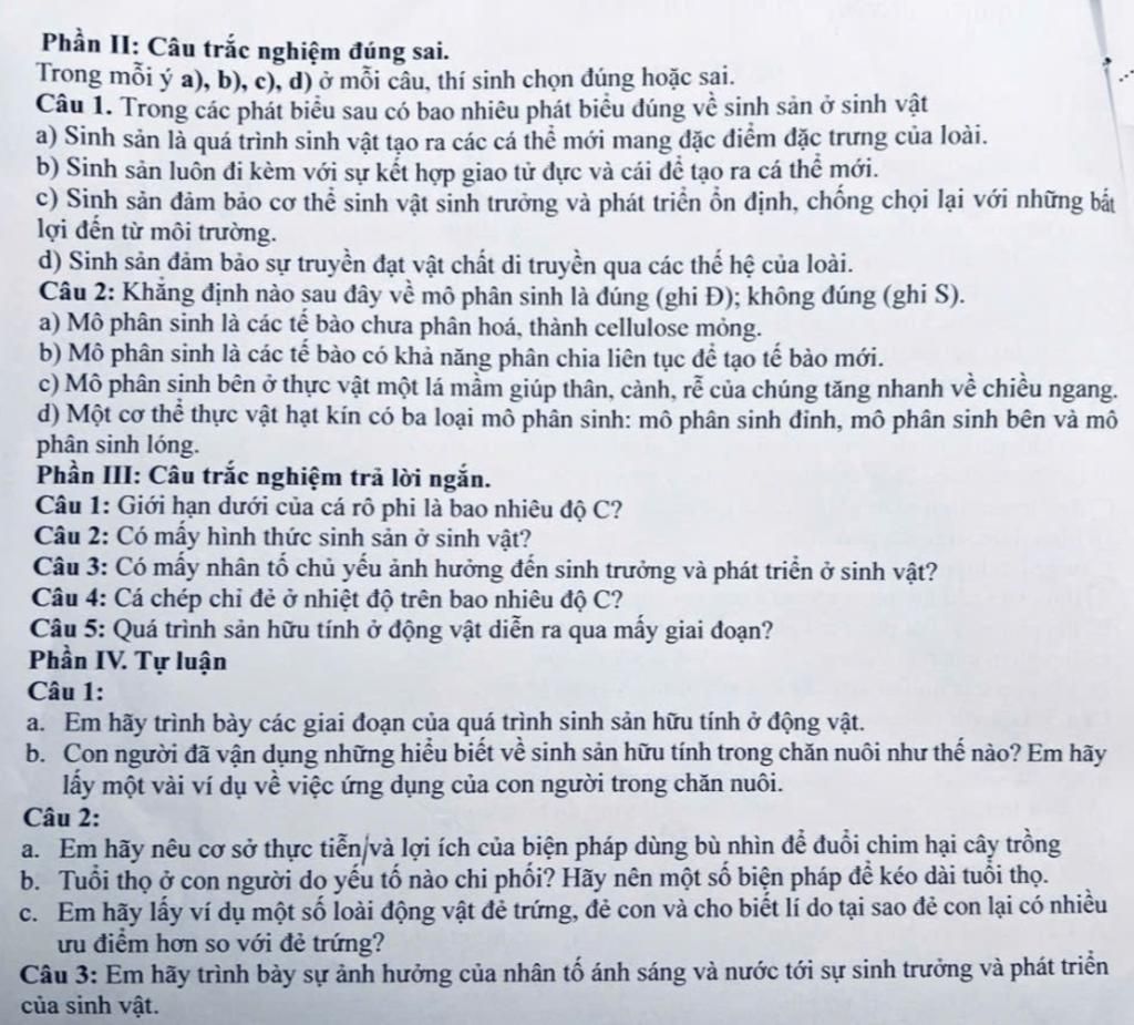 Câu 1. Trong các phát biểu sau có bao nhiêu phát biểu đúng về sinh sản ở sinh vật