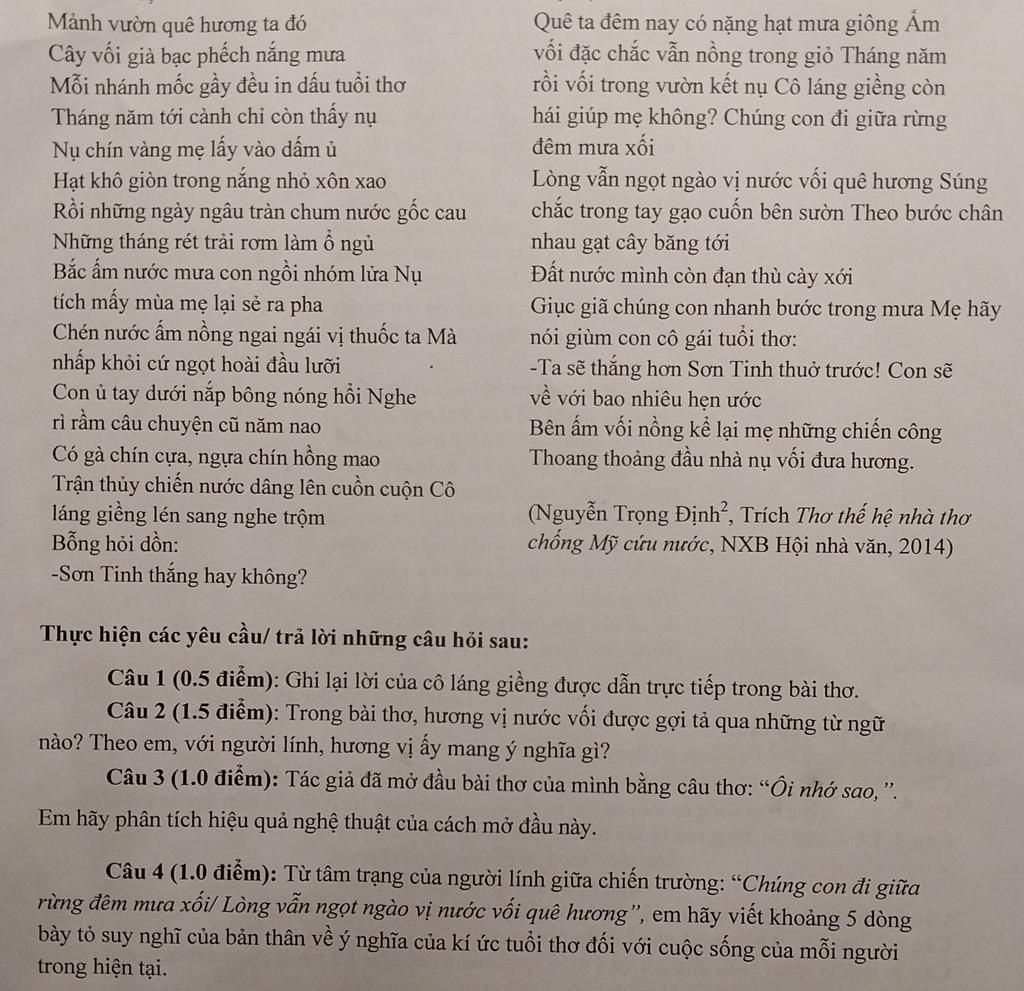 `+`Ý nghĩa: Hương vị nước vối không chỉ gợi lên hương thơm, vị ngọt mộc mạc quen thuộc của quê hương, mà còn là biểu tượng của những ký ức tuổi thơ ấm áp, tình cảm gia đình thân thương và sức mạnh tinh thần tiếp sức cho người lính giữa chiến trường