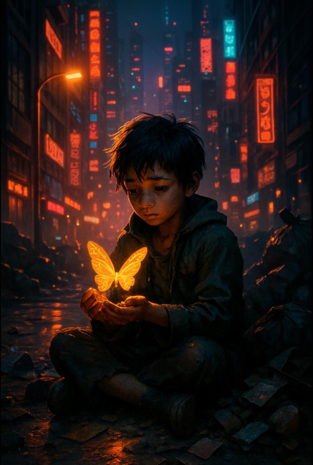 Một cậu bé ăn xin vô tình bắt được con bướm vàng