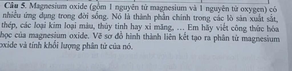 `@` Vẽ sơ đồ hình thành liên kết tạo ra phân tử magnesium oxide là: