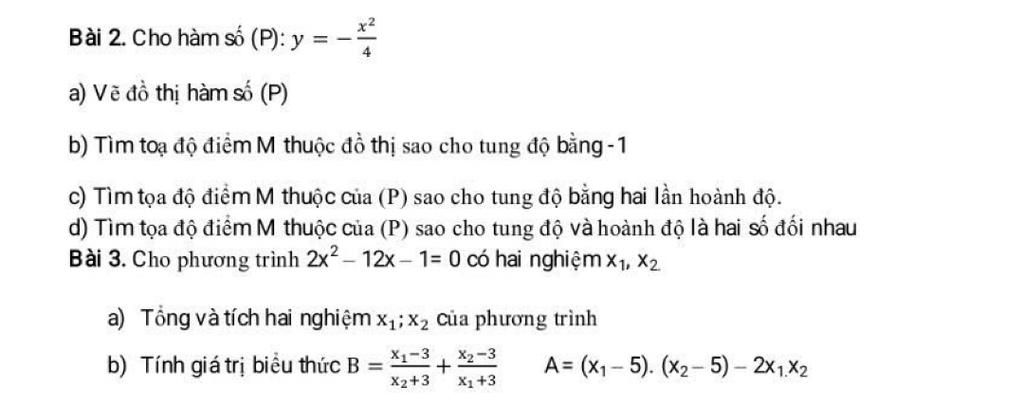 d) Tìm tọa độ điểm M thuộc của (P) sao cho tung độ và hoành độ là hai số đối nhau