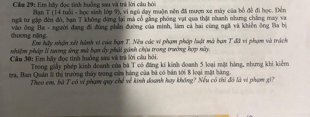 `+` Bạn `T` mới `14` tuổi, chưa đủ tuổi lái xe máy (`16` tuổi trở lên) , mà vẫn mượn xe máy để tham gia giao thông là trái luật