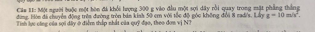 `-> T=mg+momega^2r=0.3*10+0.3*8^2*0.5=12.6(N)`