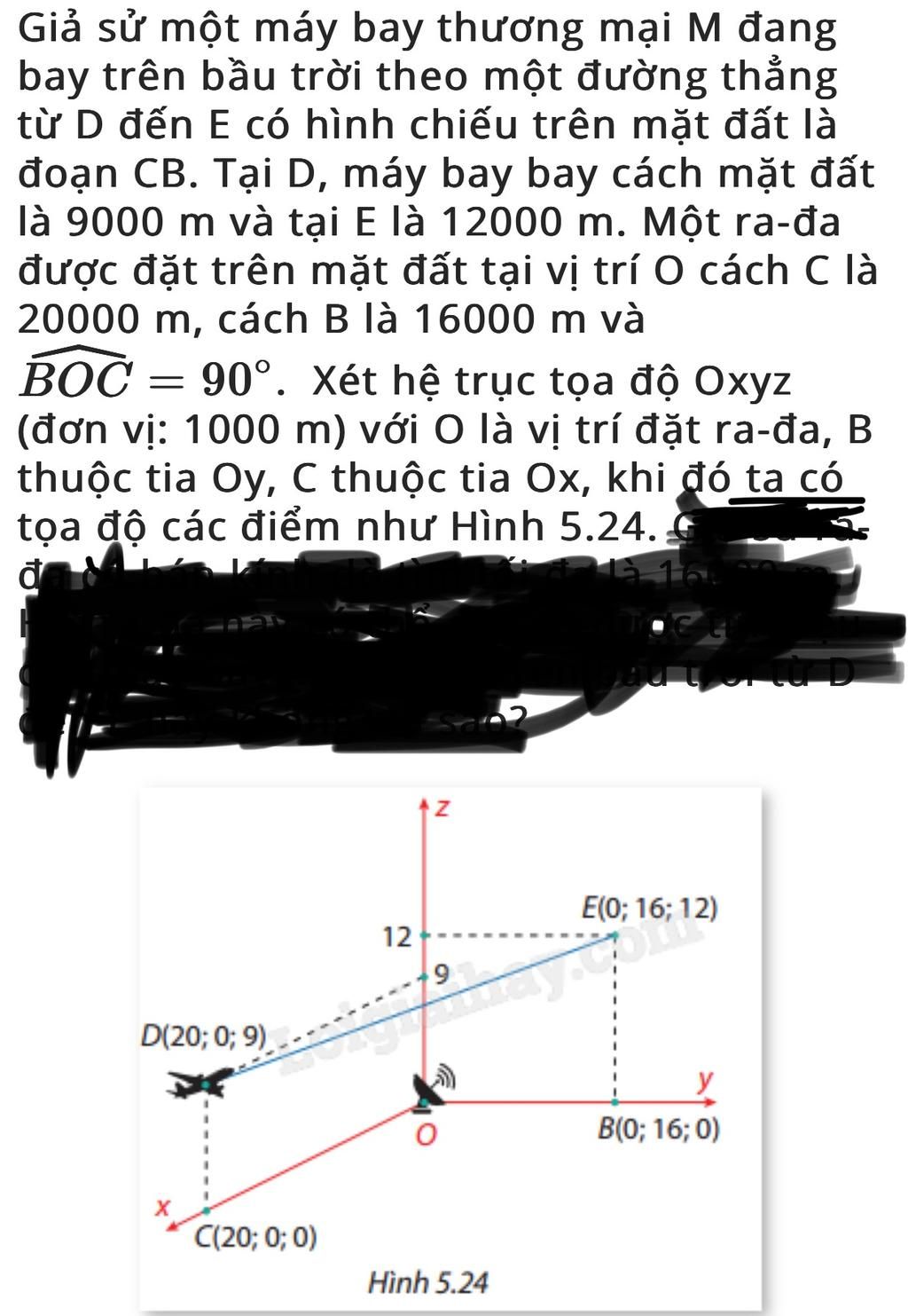 Gọi I là trung điểm của đoạn thẳng DE. Khi máy bay đến điểm I, máy bay cách mặt đất 10500m là đúng hay sai?