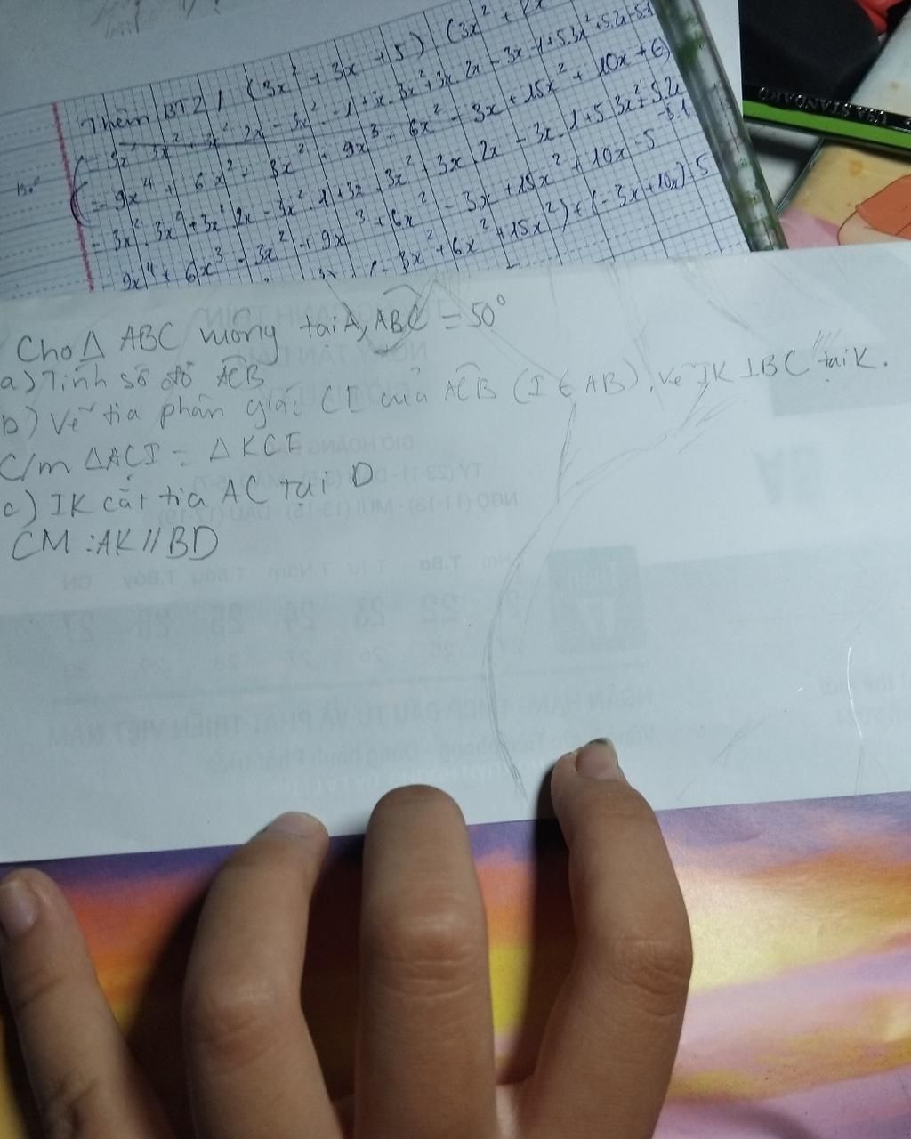 c.Từ b $\to IA=IK, CA=CK$