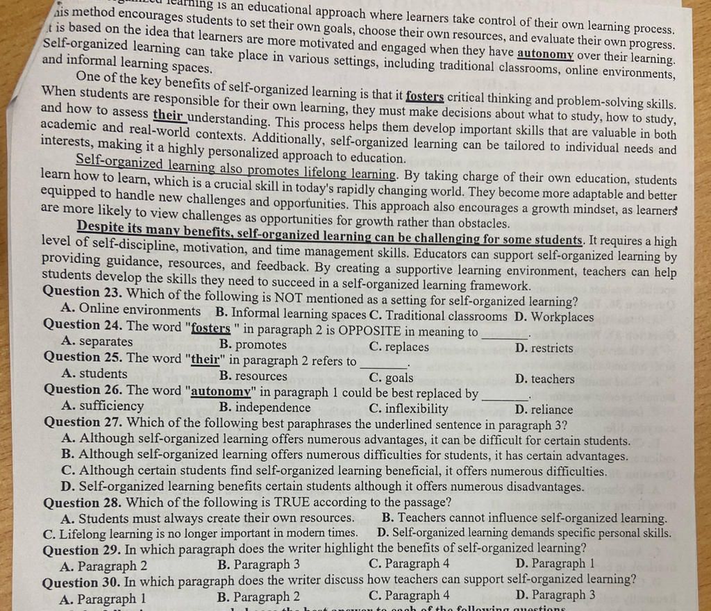 ⇒ Đoạn 3 đề cập đến lợi ích của việc tự tổ chức học tập