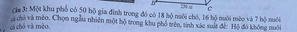 `->` Xác suất để hộ đó không nuôi cả chó và mèo là : `1-27/50 = 23/50`