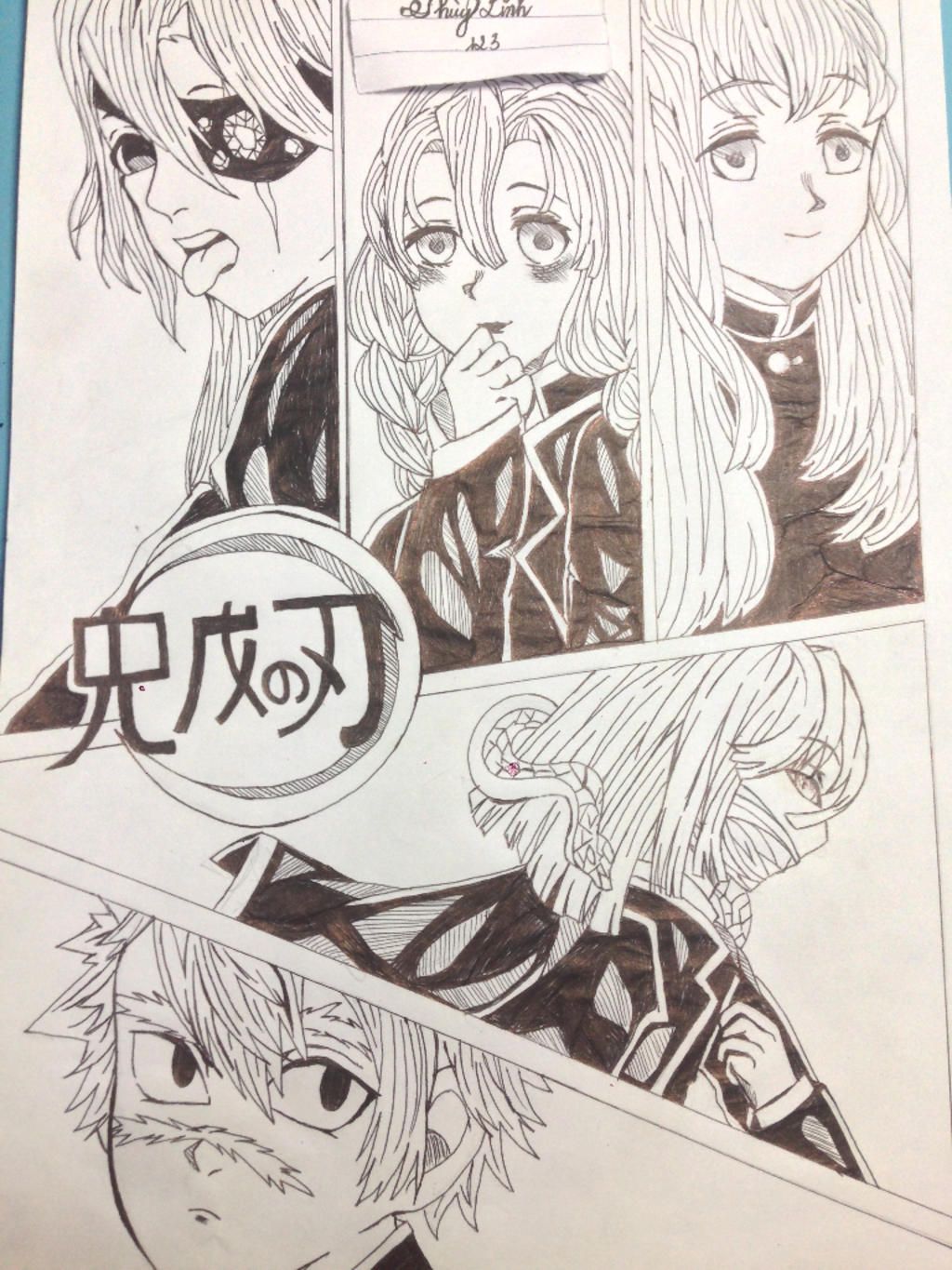 Pic 2 : Nezuko mắt bên to bên nhỏ chưa cân xứng cho khuôn mặt lắm . Zen cũng vậy ! Tô chì thì nên tô 1 hướng sẽ đẹp hơn , tập thêm phần tô bóng nữa nhé ! Tay bên trái của Nezuko cũng còn hơi Fail !