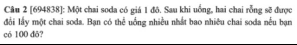 2, sau khi uống hết 100 chai,bạn sẽ có 100 chai rỗng đổi lấy 50 chai soda