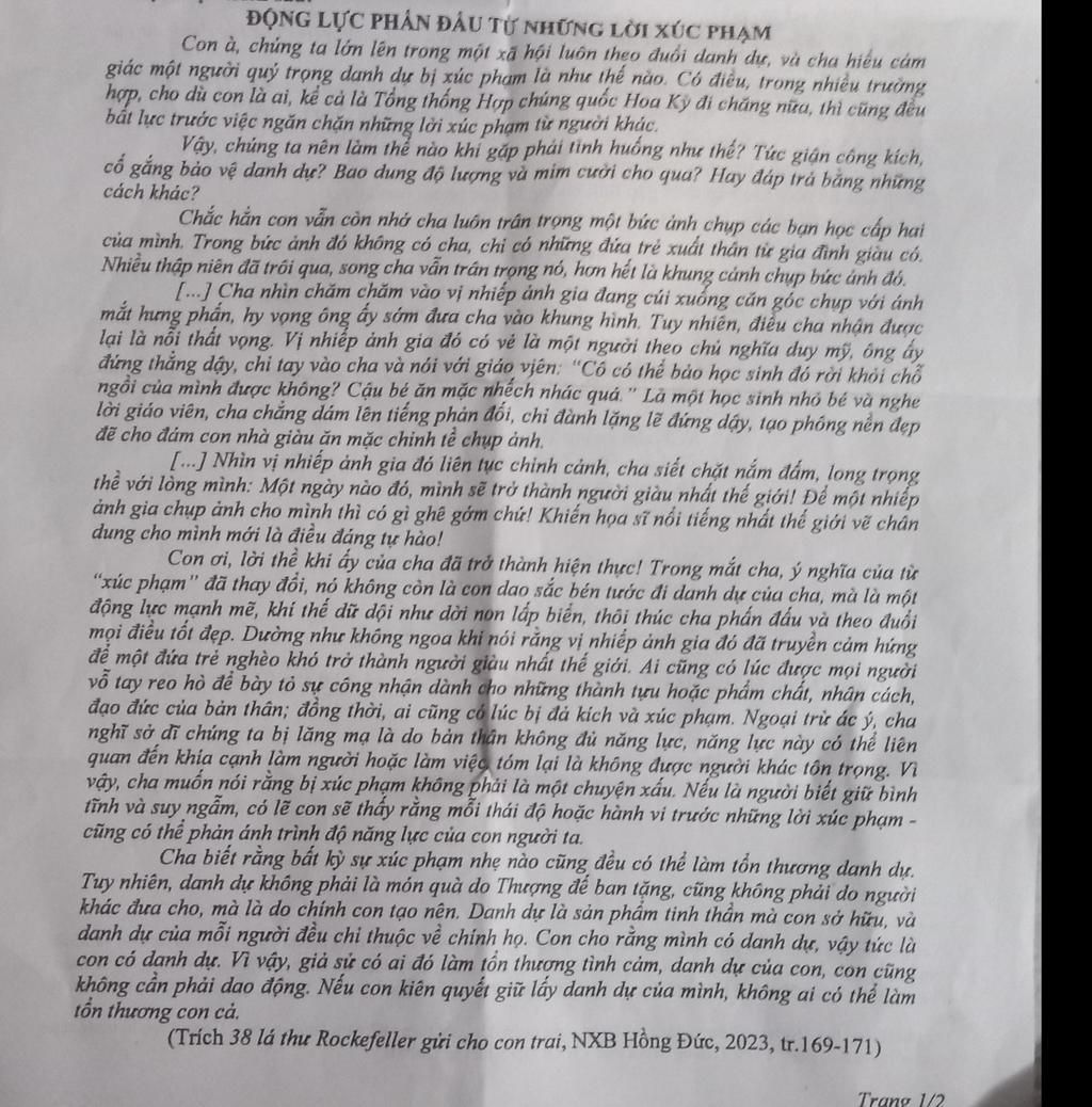 Luận đề của văn bản trên là: động lực phấn đấu từ những lời xúc phạm