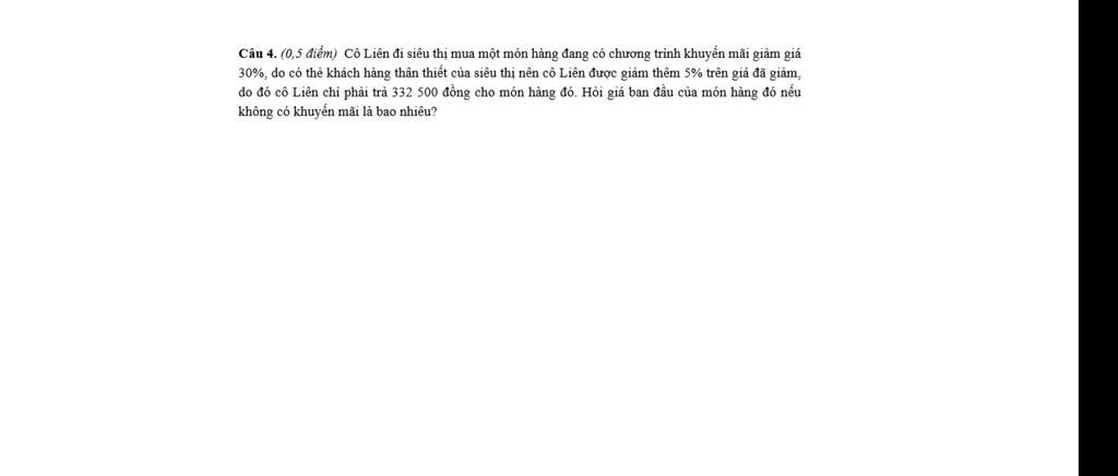 Đáp án: Giá ban đầu của món hàng là `500.000` đồng