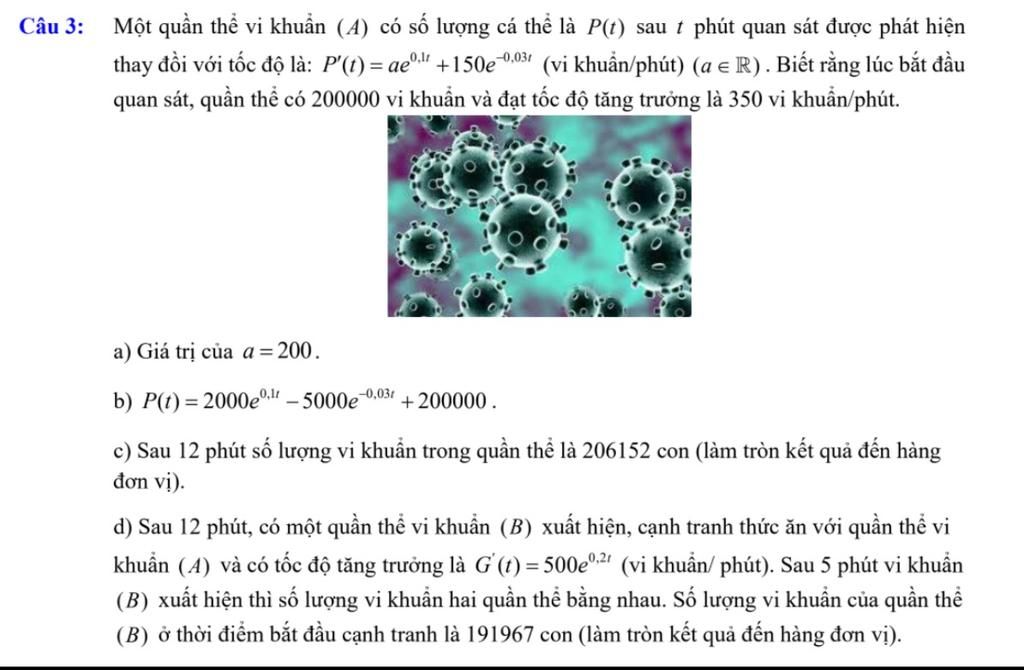 c.Sau $12$ phút số lượng vi khuẩn trong uqaanf thể là: