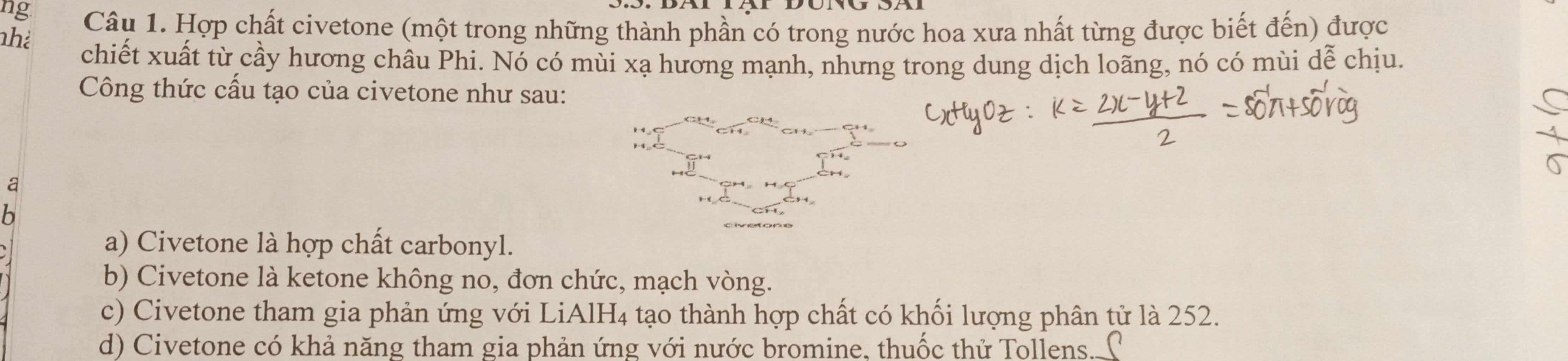 CTPT của civetone: $\rm C_{17}H_{30}O$