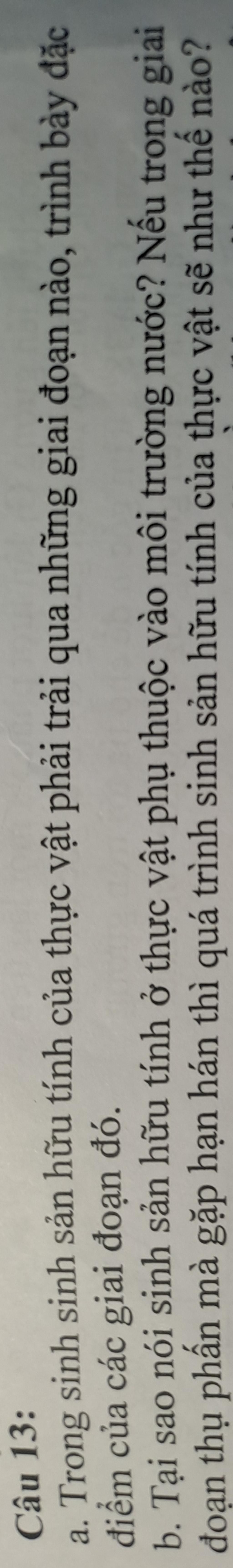 `a.` Trong sinh sản hữu tính của thực vật phải trải qua những giai đoạn nào, trình bày đặc điểm của các giai đoạn đó.