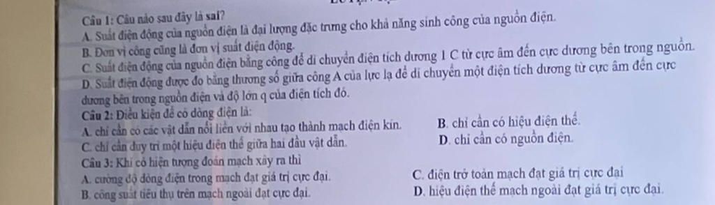 Đơn vị của công là J, đơn vị của suất điện động là V.