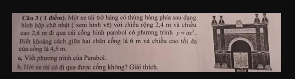 b) Để đáp ứng chiều cao thì trước hết xe tải phải đi vào chính giữa cổng